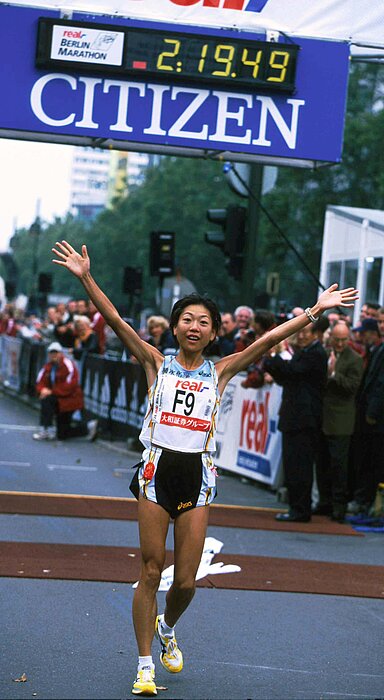 Naoko Takahashi war die erste Japanerin, die Olympisches Gold über die Marathon Distanz gewinnen konnte (Sydney 2000). Mit diesem Triumpf erreichte sie in ihrer Heimat absoluten Heldinnenstatus und trug wesentlich zur Popularisierung des Frauenmarathons in Asien bei. Beim BERLIN-MARATHON 2001 durchbrach sie als erste Frau die magische 2:20-h-Mauer und stellte mit ihrer Zeit von 2:19:46 h einen neuen Weltrekord auf. In ihrer Heimat wurde ihr sogar ein wöchentlicher Comic unter dem Namen „Tochter des Windes“ gewidmet.