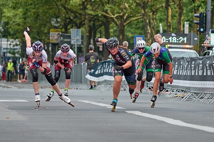 Wie gewohnt im Eventablauf der adidas Runners City Night starteten um 18.45 Uhr die Inlineskater. Es ist immer wieder ein Spektakel, wenn über den Asphalt des Kurfürstendamms die Rollen schießen und das charakteristische Surren dabei entsteht. Besonders in den Kurvenbereichen der Streckenführung wird deutlich, wie athletisch, aber auch technisch, dieser Sport ist.